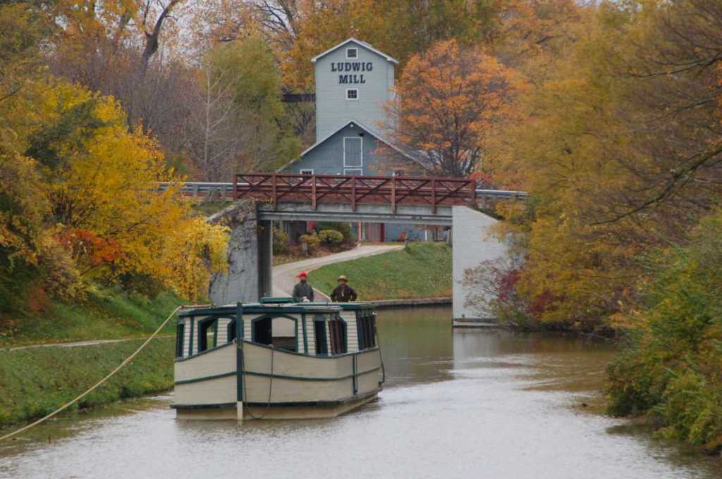 Ludwig Mill offers narrated canal boat rides along a restored section of the Miami & Erie Canal. (Credit: Ken Drenten)