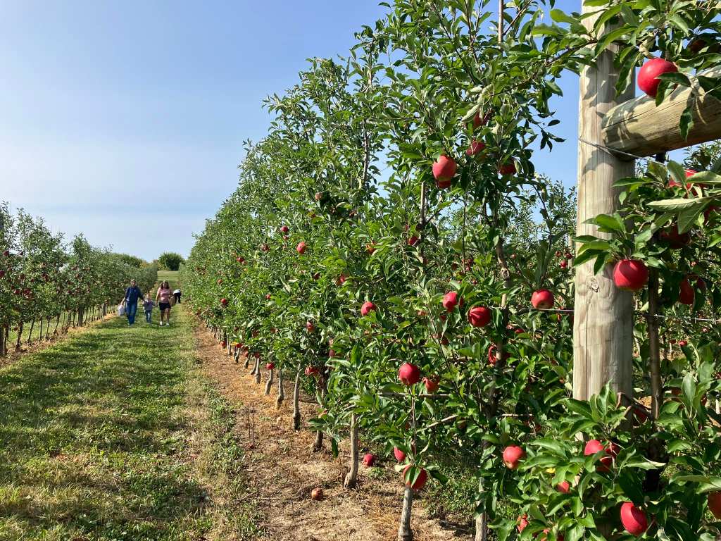 Families enjoy walking through the orchard to pick apples at Lynd Fruit Farm (Photo courtesy of Lynd Fruit Farm).