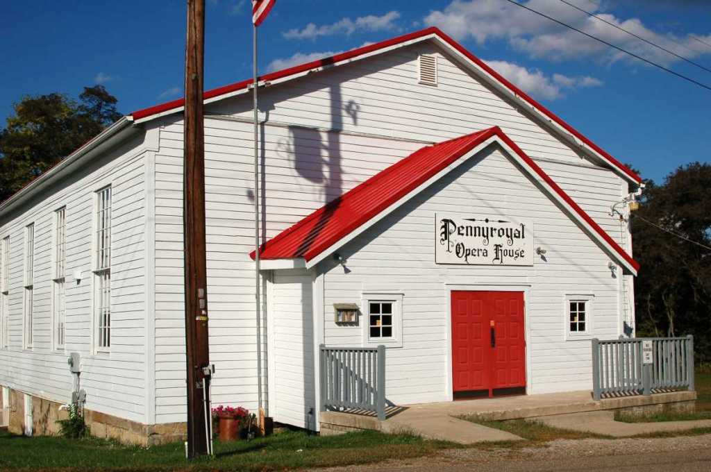 The building, known now as Pennyroyal Opera House, was originally a church built in the 1830s. The Pennyroyal Reunion Association acquired the building in 1910. The Pennyroyal Opera House began operations in 1995 and is a not for profit organization set up by The Pennyroyal Reunion committee.