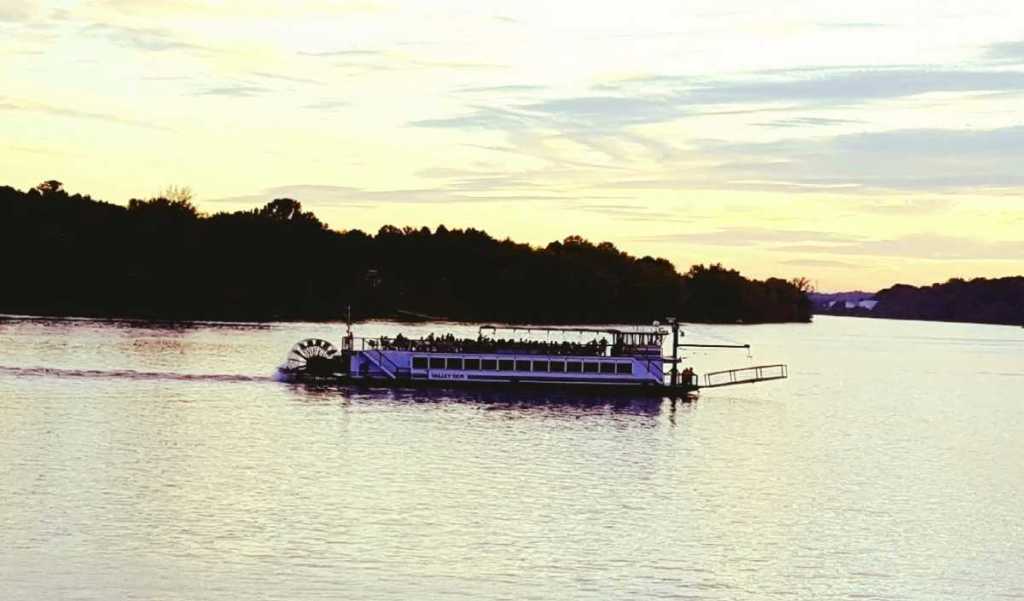 The Valley Gem makes an evening cruise near Marietta on the Ohio River. (Credit: Ken Drenten)