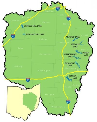 Locations of Muskingum Watershed Conservancy District lakes. (Credit: MCWD.org)