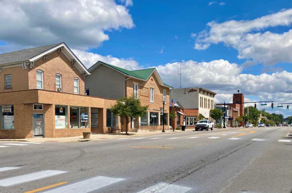 Part of West Jefferson’s downtown along U.S. 40 is shown above. (Credit: Ken Drenten)