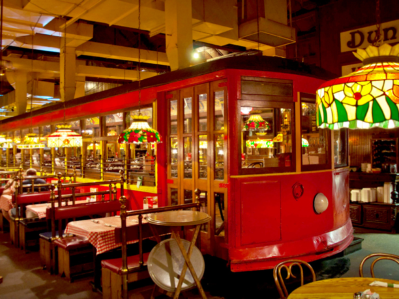 This streetcar rested in the Spaghetti Warehouse in Columbus for decades as a place to dine until the restaurant’s demolition in June 2025. A community group saved it and is renovating it as the centerpiece of a Columbus community park and cultural center. (Credit: Spaghetti Warehouse)