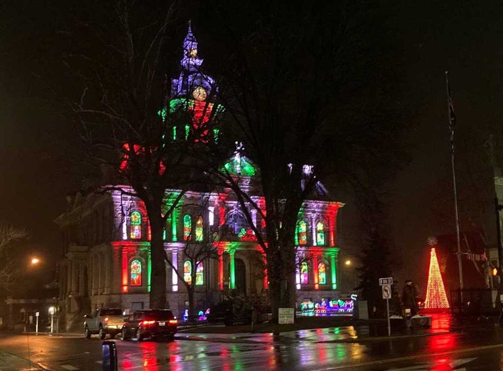 The Guernsey County Courthouse has lights synchronized to holiday music.